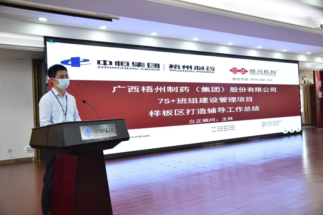 王林顧問為本次7S樣板區(qū)打造輔導(dǎo)工作總結(jié),肯定了10個樣板區(qū)取得的成績,提出了樣板區(qū)細(xì)節(jié)提升建議,并對后續(xù)7S管理推廣工作安排進行簡要說明。