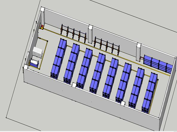 針對物品擺放凌亂,沒有明顯標(biāo)識,物品尋找時間花費較多的現(xiàn)狀,組員通過三維建模,對備件室進(jìn)行重新布局。改善后,對貨架進(jìn)行橫向擺放,空間利用率提高10%,騰出了較多空間,通道距離也增大了,方便人員、車輛通過。