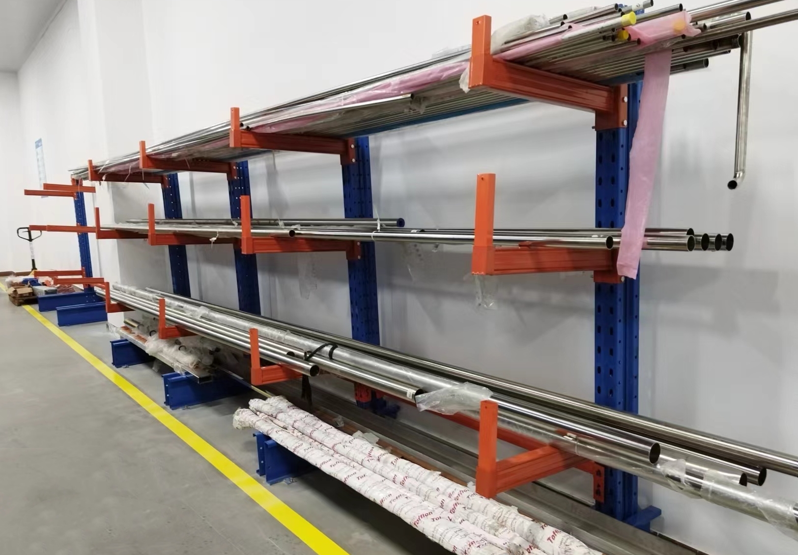 對于雙面懸臂式貨架不銹鋼管擺放凌亂,鋼管進(jìn)出困難,并影響人員車輛走動的問題,團(tuán)隊通過變更成2個單面懸臂式貨架,并將貨架移位靠墻壁擺放解決問題。改善后,不銹鋼管進(jìn)出通暢,不影響人員車輛移動,同時減少了安全隱患。