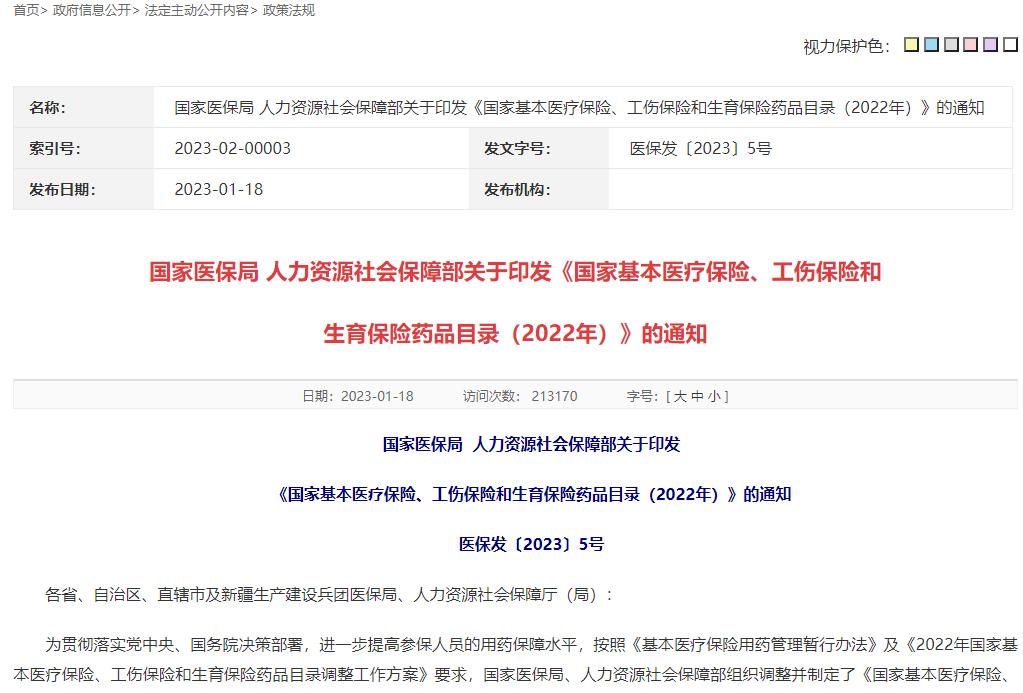 2023年1月18日,國家醫(yī)療保障局正式對外公布2022年《國家基本醫(yī)療保險、工傷保險和生育保險藥品目錄》,其中梧州制藥公司獨(dú)家生產(chǎn)的國家基藥——注射用血栓通(凍干)由2021年“限二級及以上醫(yī)療機(jī)構(gòu)的中風(fēng)偏癱或視網(wǎng)膜靜脈阻塞患者”調(diào)整為:“限二級及以上醫(yī)療機(jī)構(gòu)”。并于2023年3月1日起正式執(zhí)行。