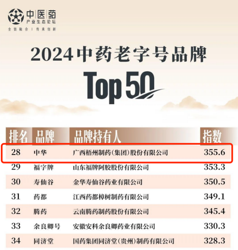 成立以“全國五一勞動獎?wù)隆薄叭珖逡唤韼綐?biāo)兵”“廣西工匠”獲得者雷潔萍命名的勞模工匠人才創(chuàng)新工作室,不斷壯大傳承人隊伍,目前中華跌打丸制作技藝已傳承至第五代,推動“中華”品牌代代相傳。“中華”品牌曾入選2023年“中國500最具價值品牌”,估值100.06億。