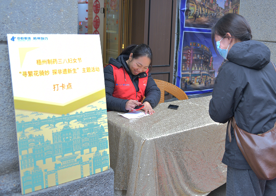 活動(dòng)現(xiàn)場,女職工們?nèi)宄扇?,穿梭于騎樓城的大街小巷,感受百年騎樓的獨(dú)特魅力,探尋隱匿在歷史深處的非遺文化。在“非遺尋韻‘跌打丸’”任務(wù)點(diǎn),大家紛紛駐足,掃碼觀看《“丸”世傳奇》短劇,深入了解中華跌打丸這一非遺瑰寶的歷史與傳承。蓋在主題卡上的“中華”印章,為這場探索之旅增添了濃厚的歷史韻味。