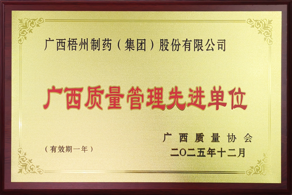 廣西梧州制藥(集團(tuán))股份有限公司獲評2025年廣西質(zhì)量管理先進(jìn)單位