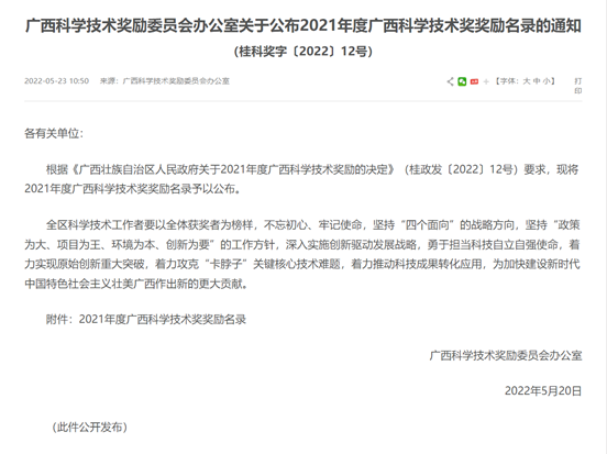 近日,廣西科學技術(shù)獎勵委員會辦公室發(fā)布《關(guān)于公布2021年度廣西科學技術(shù)獎獎勵名錄的通知》(桂科獎字〔2022〕12號),2021年度廣西科學技術(shù)獎揭曉,162項科技成果榜上有名,其中梧州制藥與天津中醫(yī)藥大學、浙江大