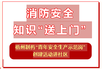 消防安全知識(shí)“送上門”梧州制藥“青年安全生產(chǎn)示范崗”創(chuàng)建活動(dòng)進(jìn)社區(qū)近日,梧州制藥青年員工積極參與“中恒集團(tuán)青年安全生產(chǎn)示范崗”創(chuàng)建工作,不但注重將創(chuàng)建活動(dòng)與日常班組生產(chǎn)工作有機(jī)融合,還結(jié)合今年第23個(gè)全國(guó)安全